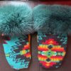 Experience warmth and Arctic elegance with our Green Sealskin and Black Fox Fur Trim Mittens. Handcrafted from rich green sealskin and accented with lush fox fur, they feature a soft wool lining for comfort and black buffalo hide palms for durability and grip — perfect for everyday wear and cold-weather adventures.