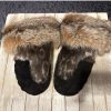 Green sealskin mittens, trimmed with fluffy black fox fur, are incredibly warm, soft, and stylish for winter.