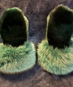- Green sealskin, green fox fur with wool lining & black buffalo hide.