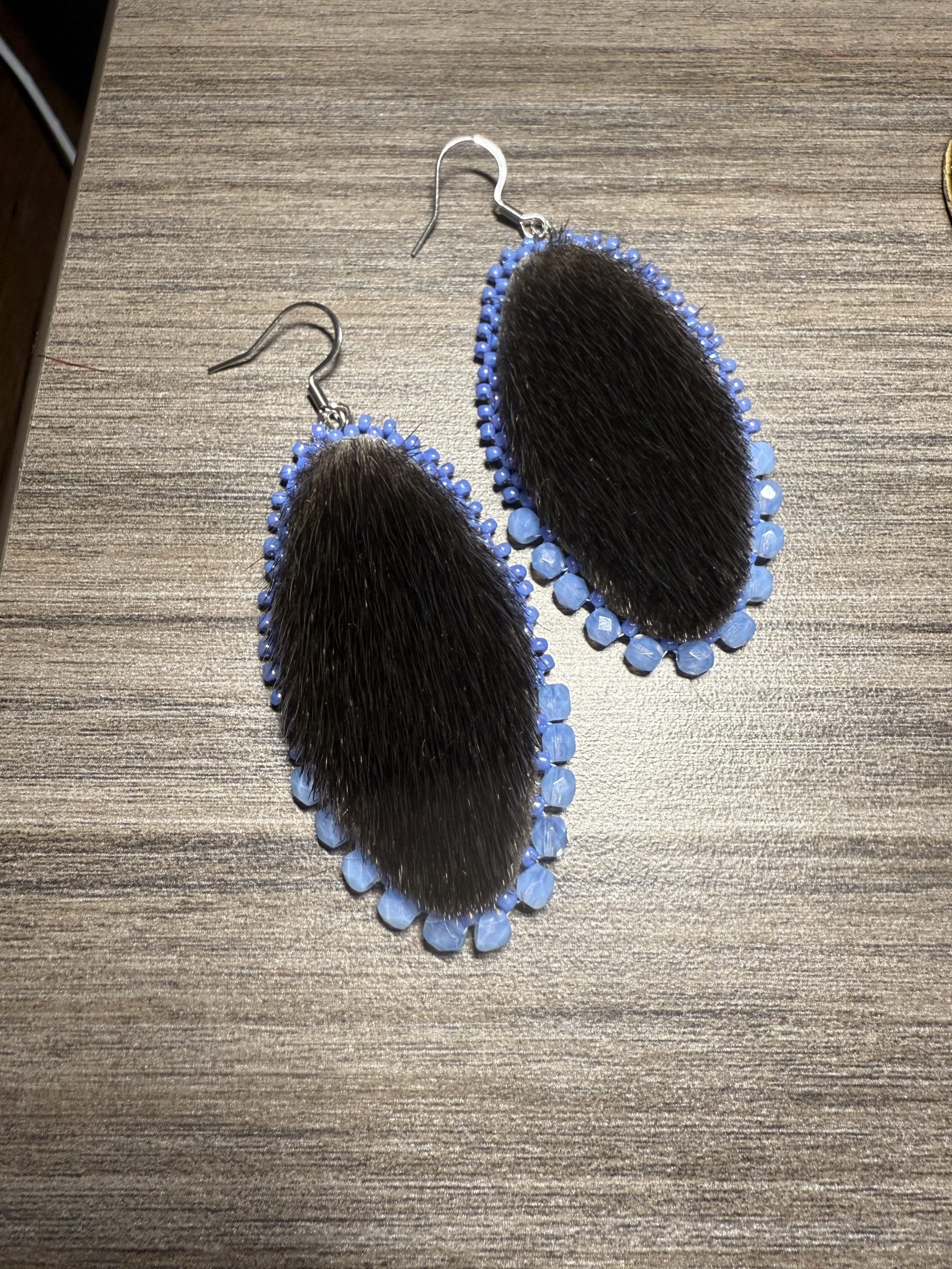 Harp Seal Skin oval earrings with seal leather backing & stainless steel hooks