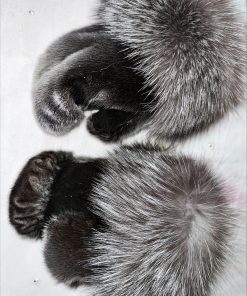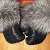 These Harp Sealskin and Indigo Fox Fur Boxer Style Mitts are women’s size large and made to keep your hands warm and comfortable. They’re crafted from genuine harp sealskin and black cowhide leather for strength and style, with soft Indigo Fox fur trim for added warmth and a touch of luxury. Inside, they feature a bonded sherpa lining that provides cozy insulation while staying lightweight. Durable, stylish, and perfect for cold weather, these mitts offer both warmth and elegance for everyday winter wear.
