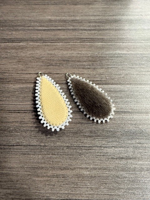 Celebrate the beauty of the North with these unique, handcrafted earrings. Featuring a harp seal design, each piece is adorned with white seed beads, a luxurious muskox leather backing, and a carefully inlaid wood accent. Finished with NF lead-free hooks, these earrings are both safe and comfortable to wear.