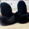 - Native print fabric, green fox & brown buffalo hide with wool lining