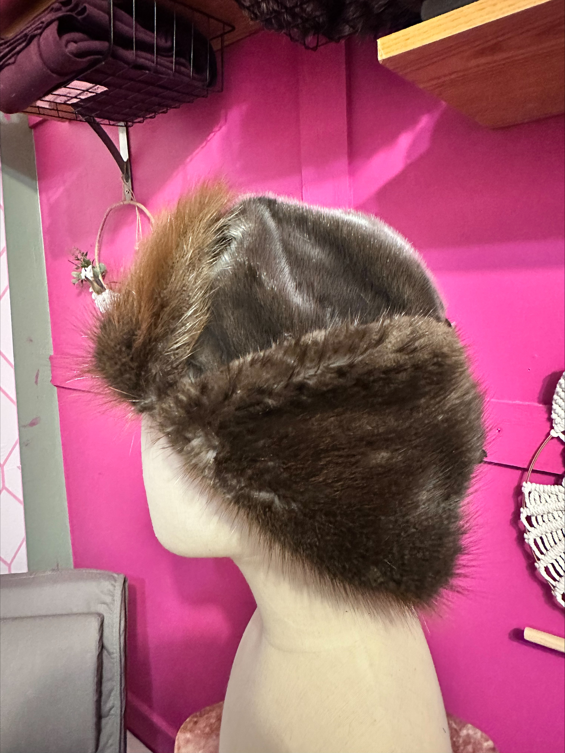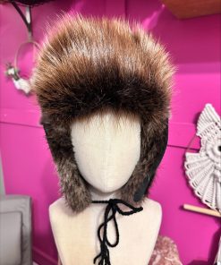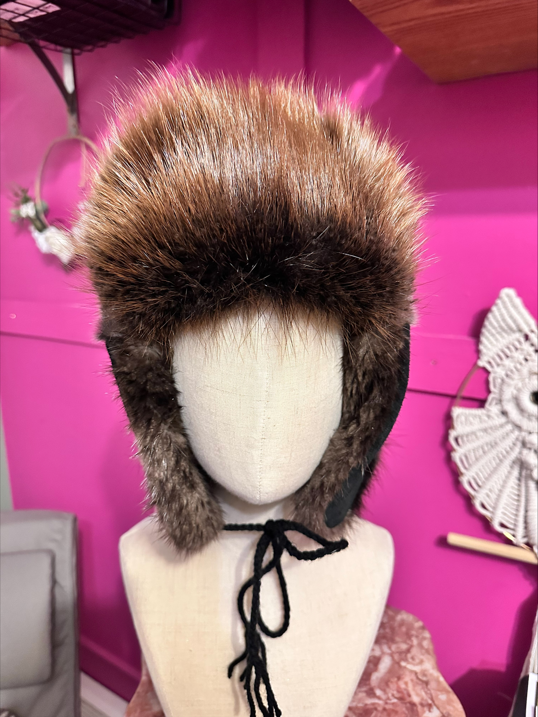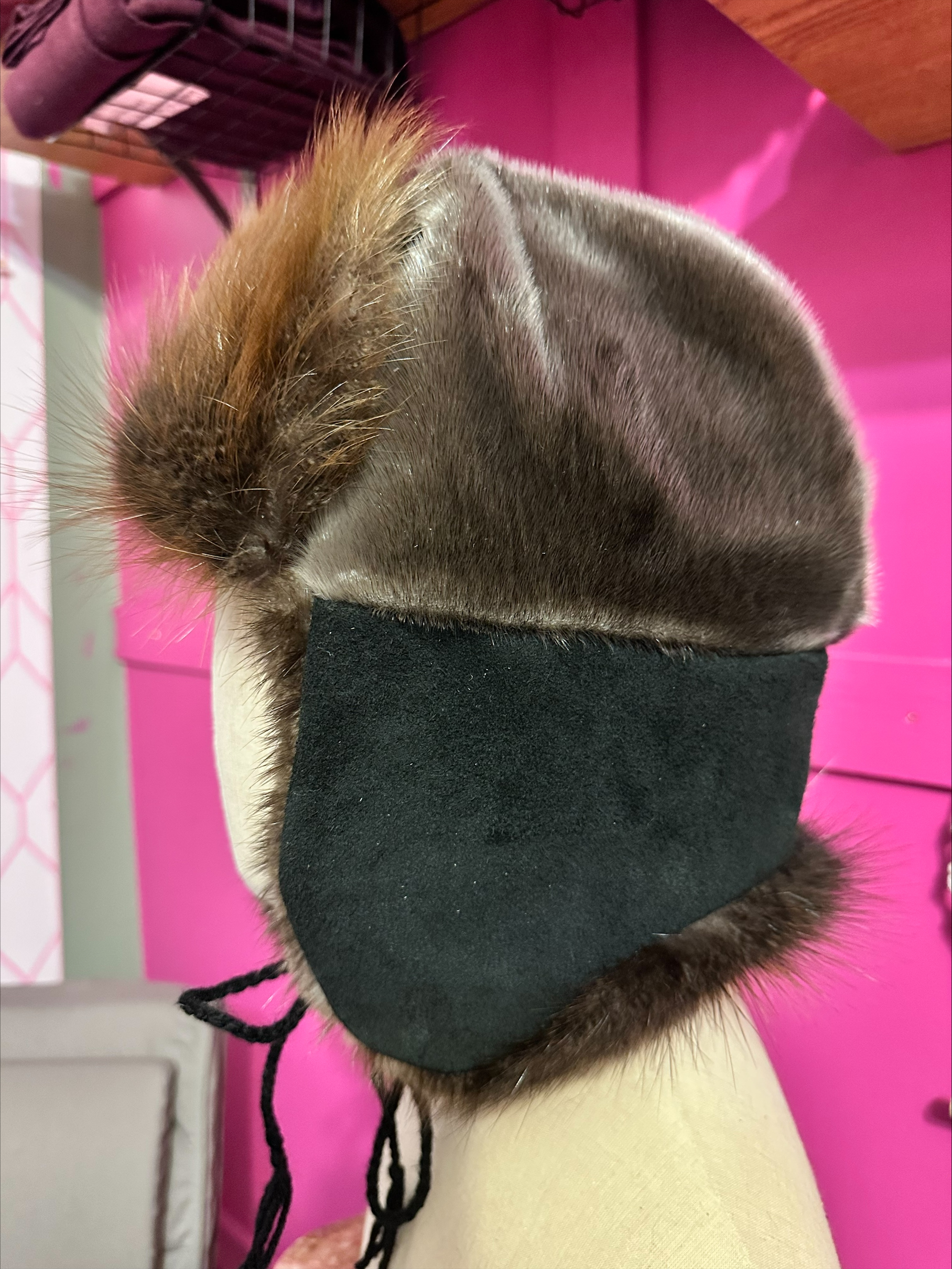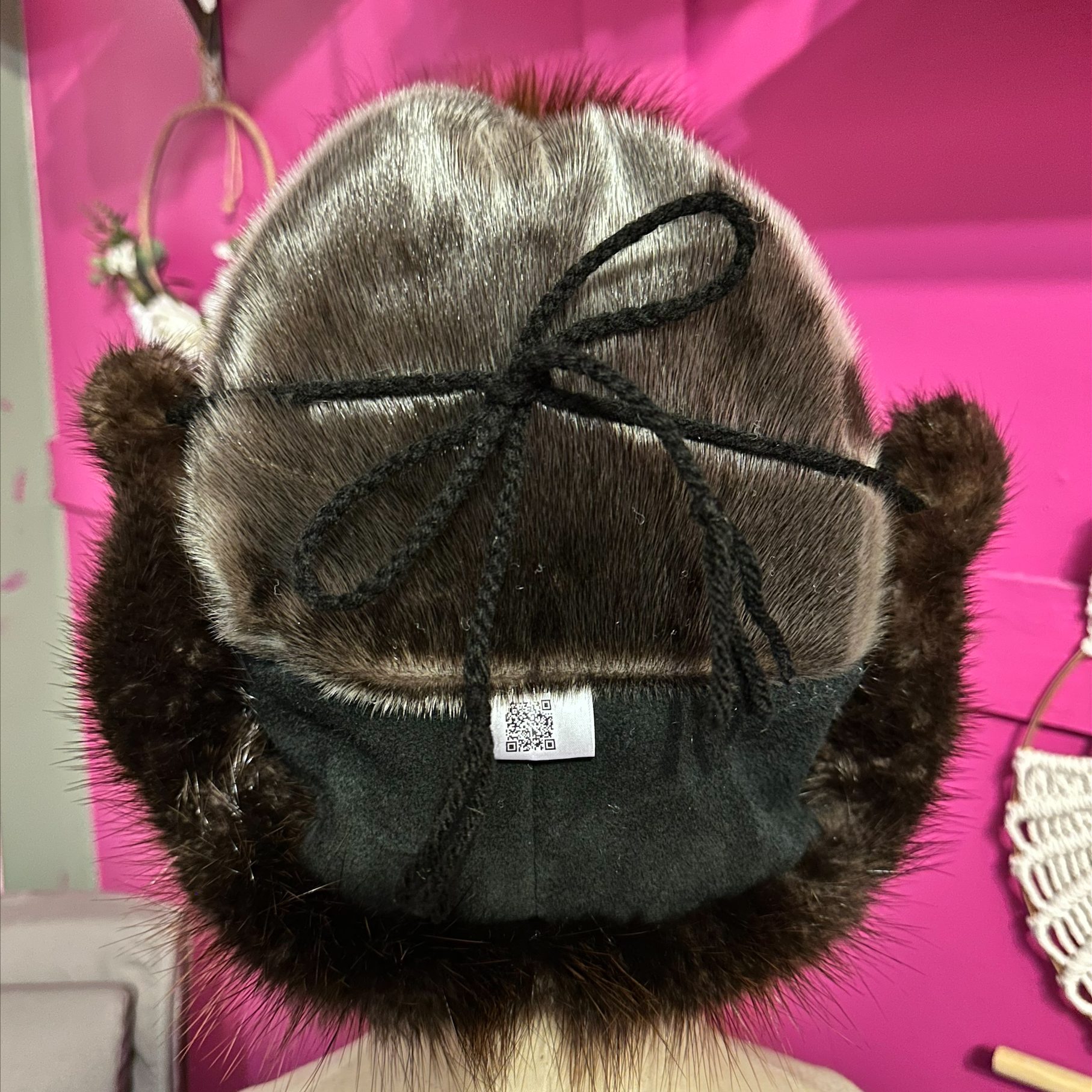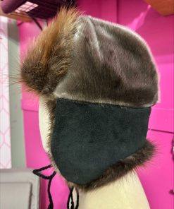 A premium trapper hat made from natural harp seal, beaver, and black leather—designed for warmth, durability, and classic winter style.