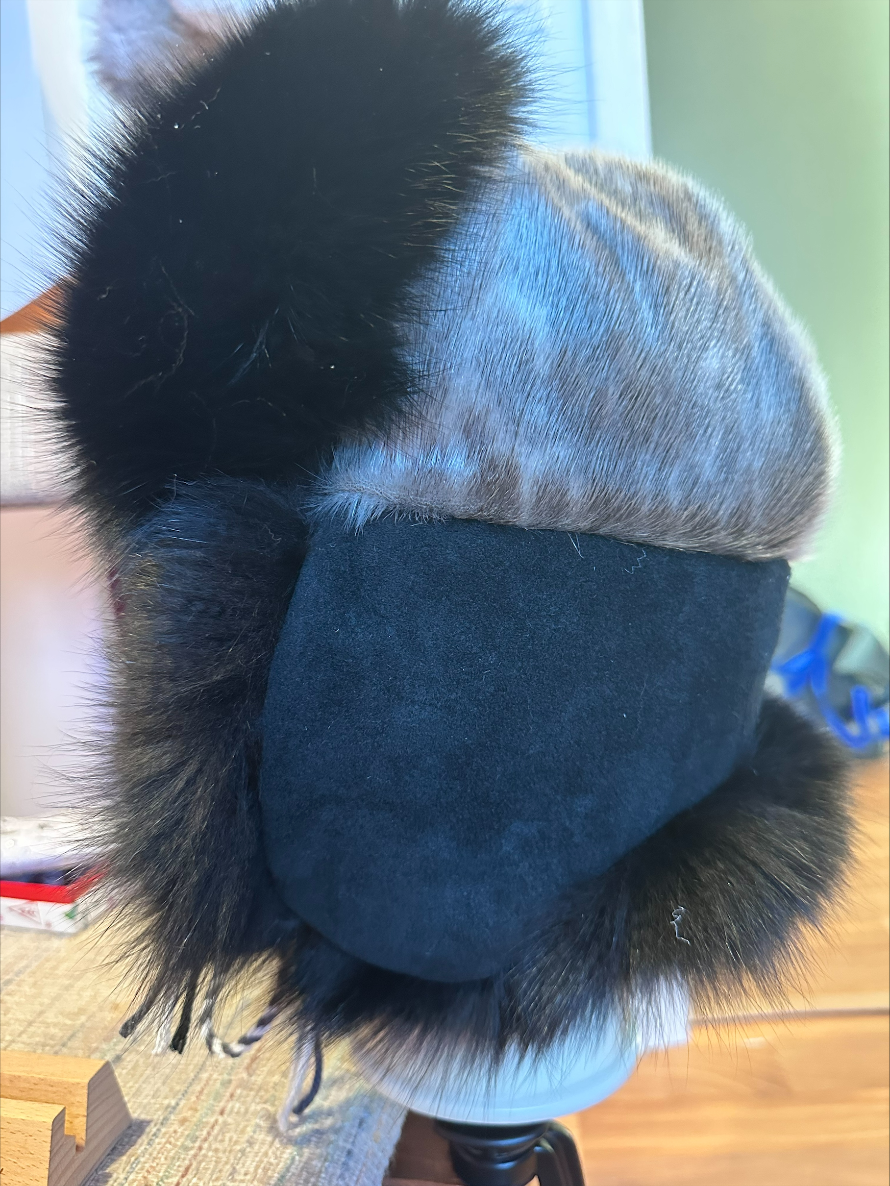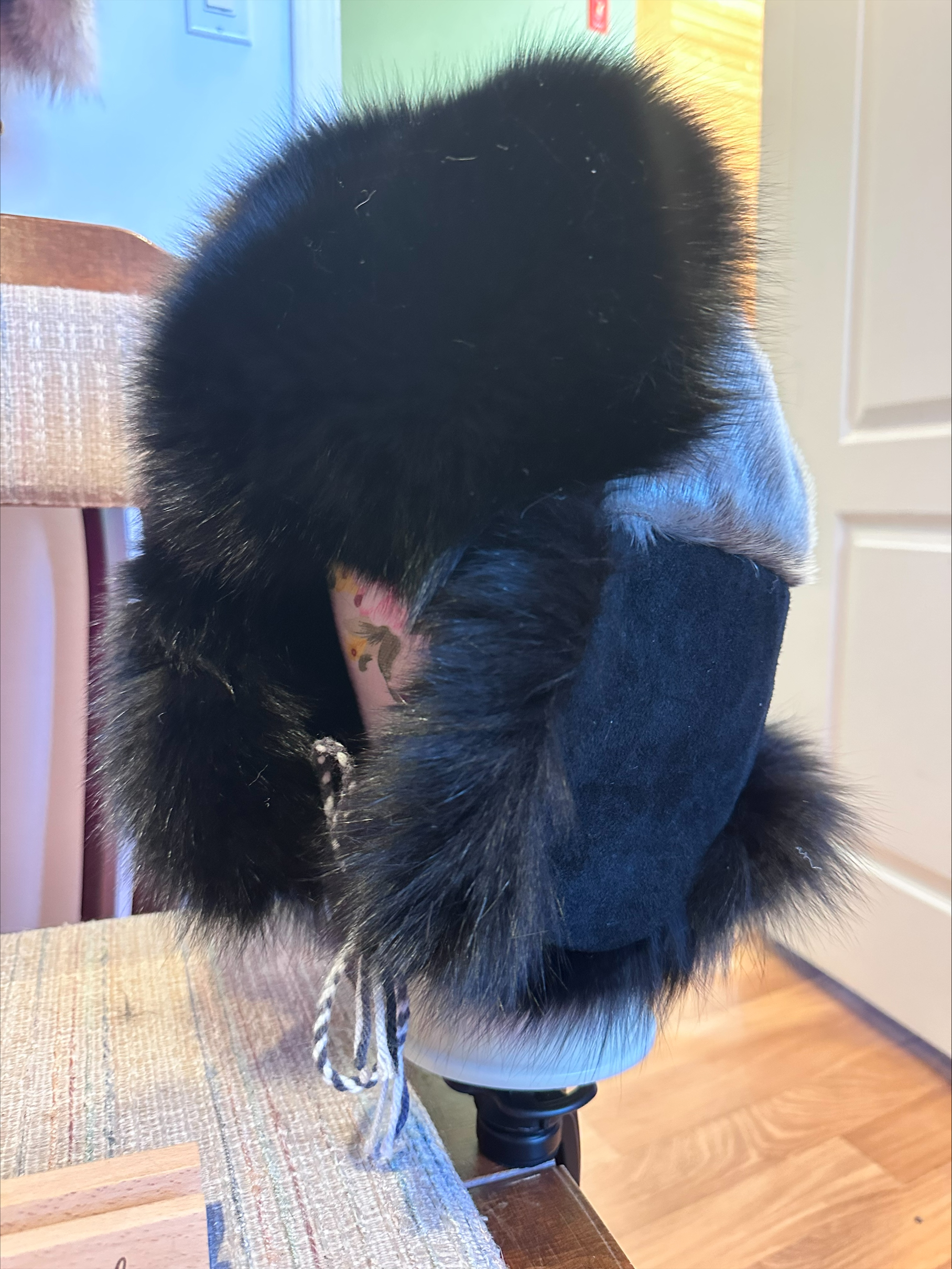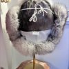 Trapper hat crafted with ringed sealskin, fox fur, and black hide. Warm, durable, and designed for comfort.